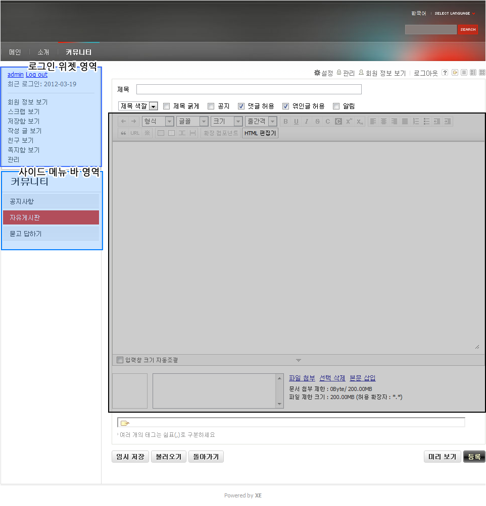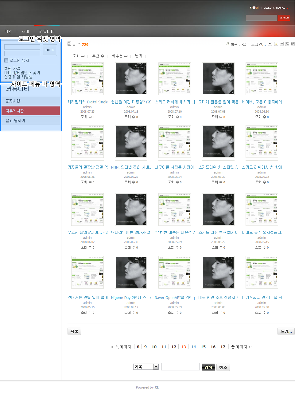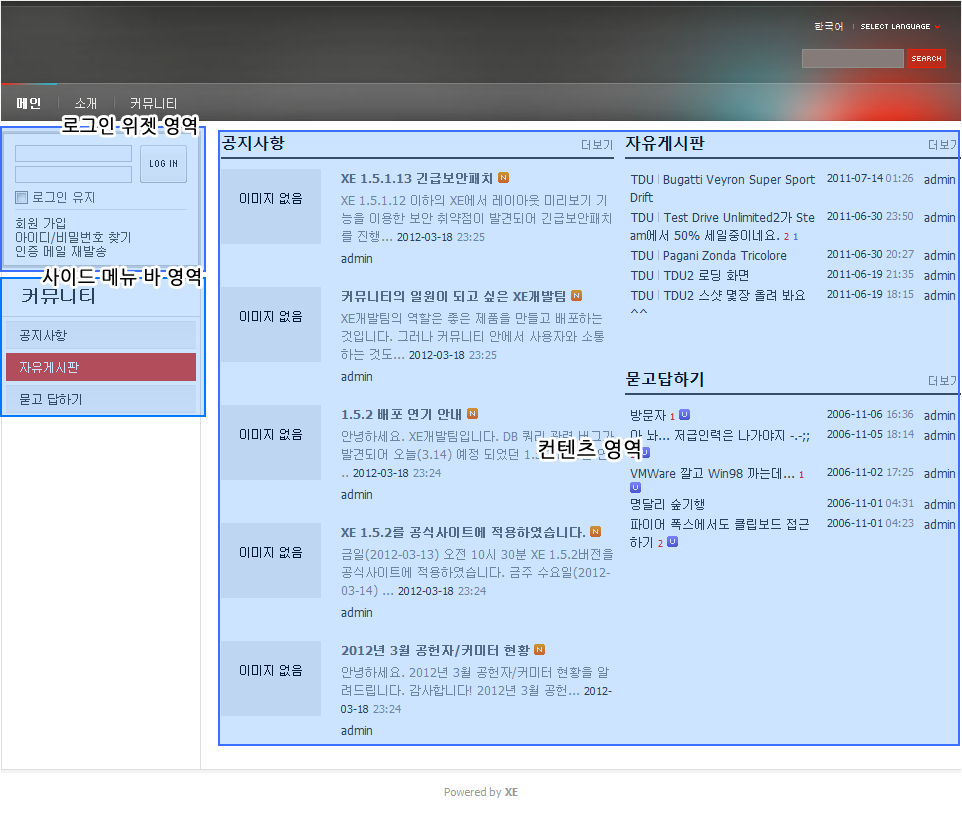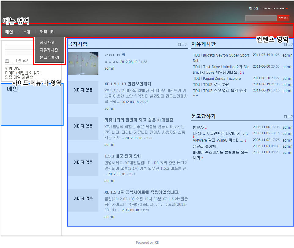 - 컨텐츠 영역을 새롭게 디자인하고자 하는 경우 "타이틀 영역"에 해당하는 그림 01-03부분을 디자인하시면 됩니다.