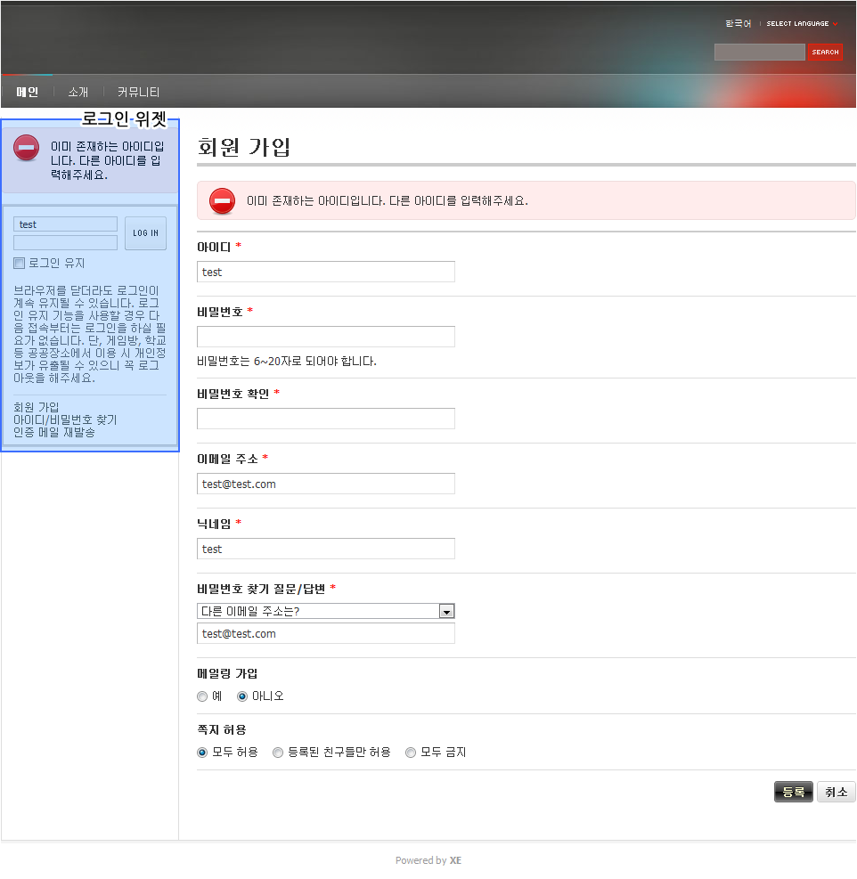 - 회원가입 실패 메시지 노출 영역도 디자인 합니다.