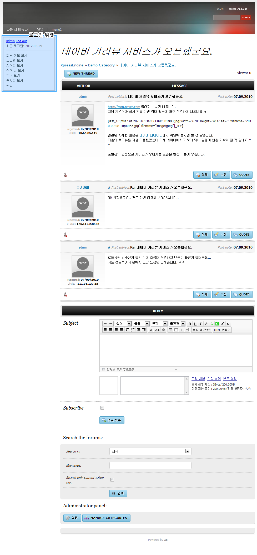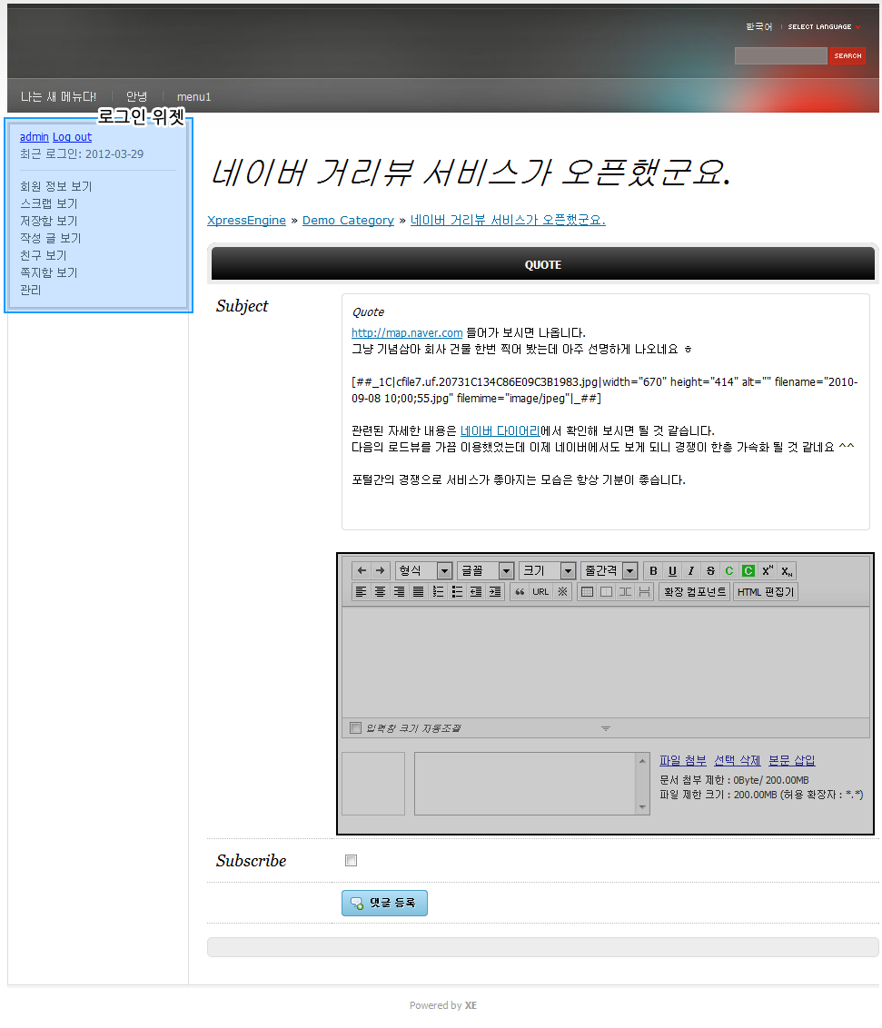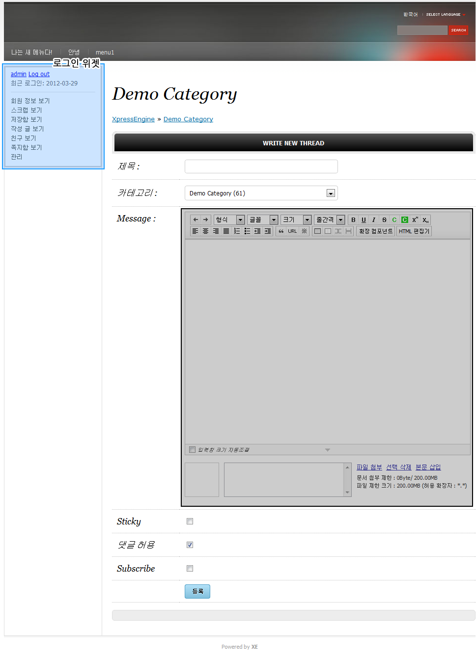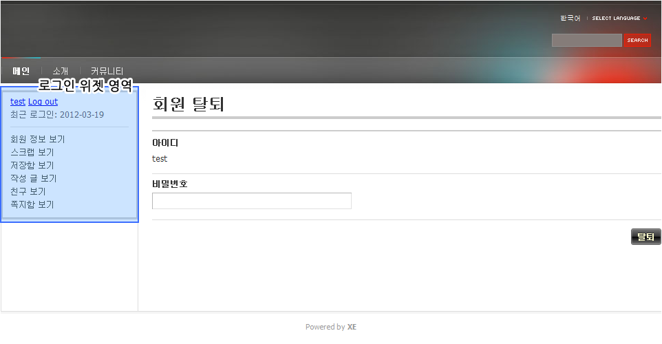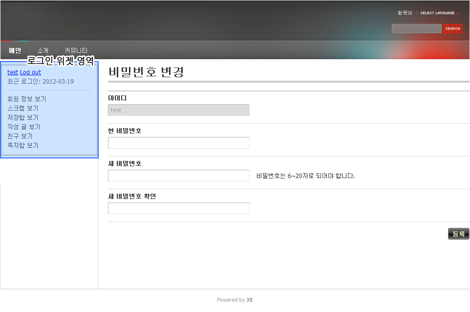 - 로그인 위젯은 포함하지 않아도 됩니다.