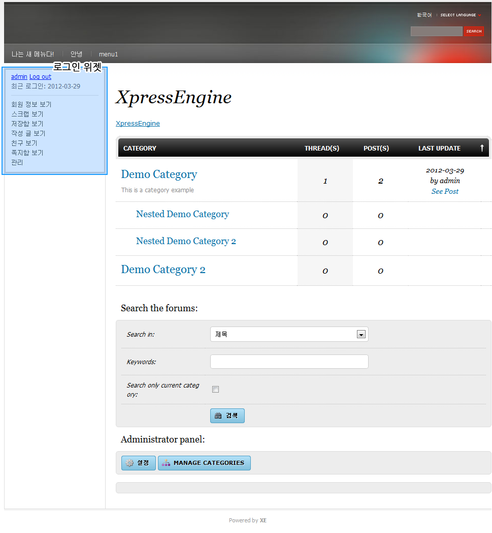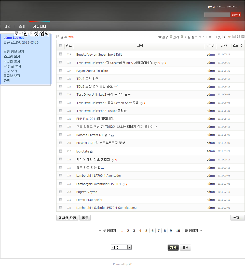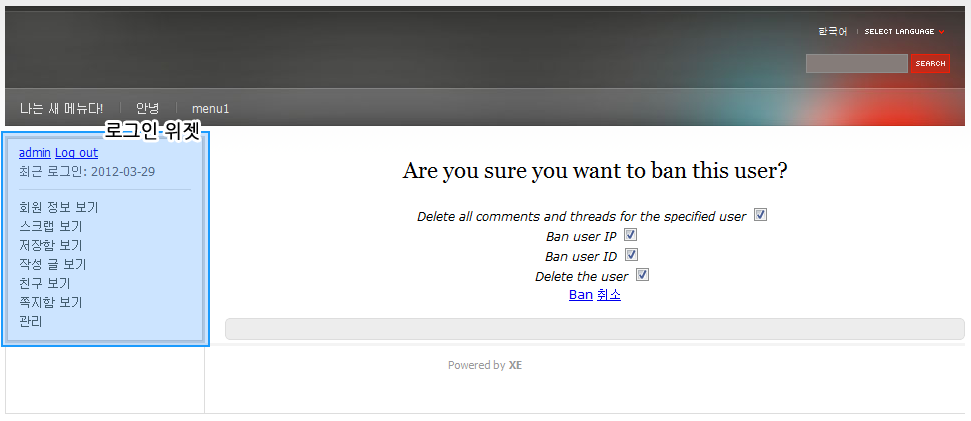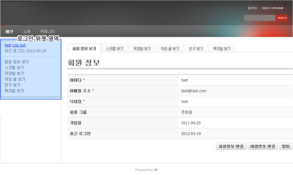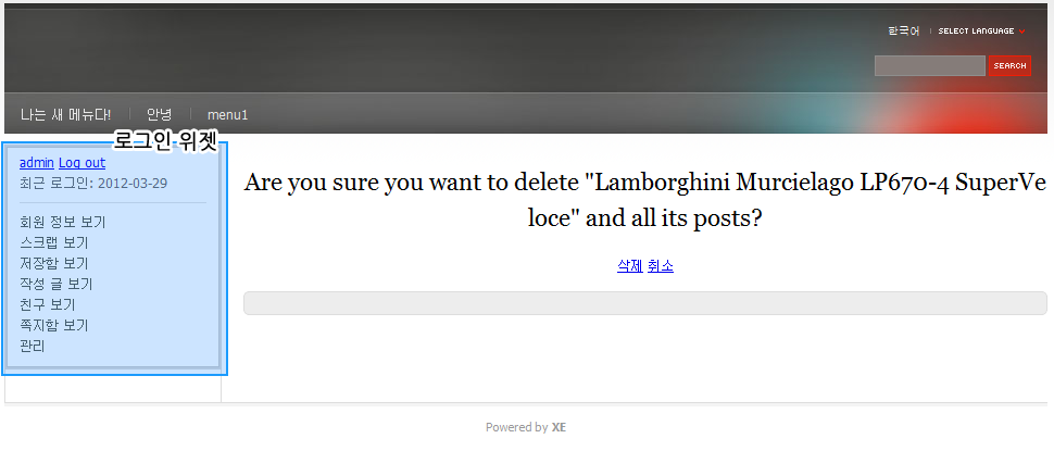 - 로그인 위젯은 포함하지 않아도 됩니다.