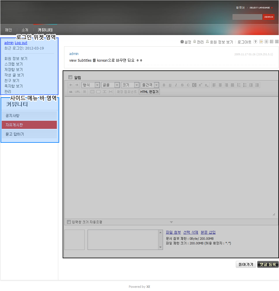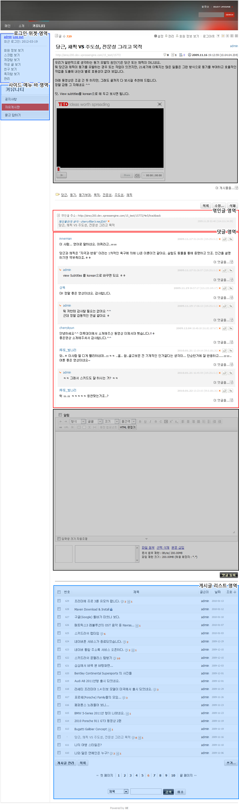 - 엮인글 영역과 댓글 영역을 구분하되 반드시 디자인에 포함합니다.