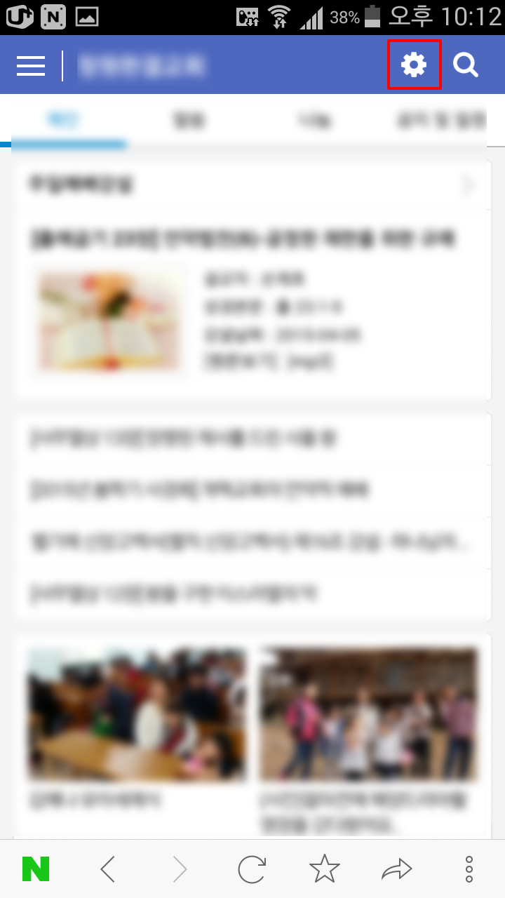 아래의 그림과 같이 앱을 실행하면 모바일페이지로 바로 연결이 되면 싸이트 상단에 설정버튼이 있는데, 이것을 누르면 그 다음 사진과 같이 알림 설정화면이 나오게 됩니다.