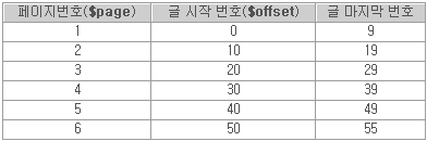 글 번호가 저장되어 있고, $list_num에는 한 페이지에 표시할 목록의 개수가