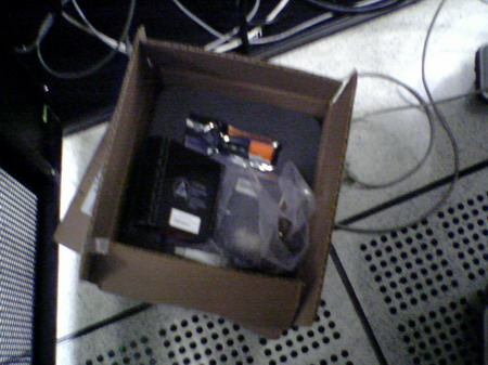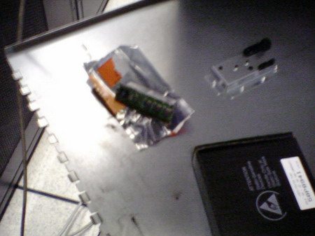 왼쪽 검은 박스가 cpu, 그 윗쪽은 anti-static foil로 포장한 램, 오른쪽 비닐에 있는 것은 cpu VRM(전압 조절 장치)